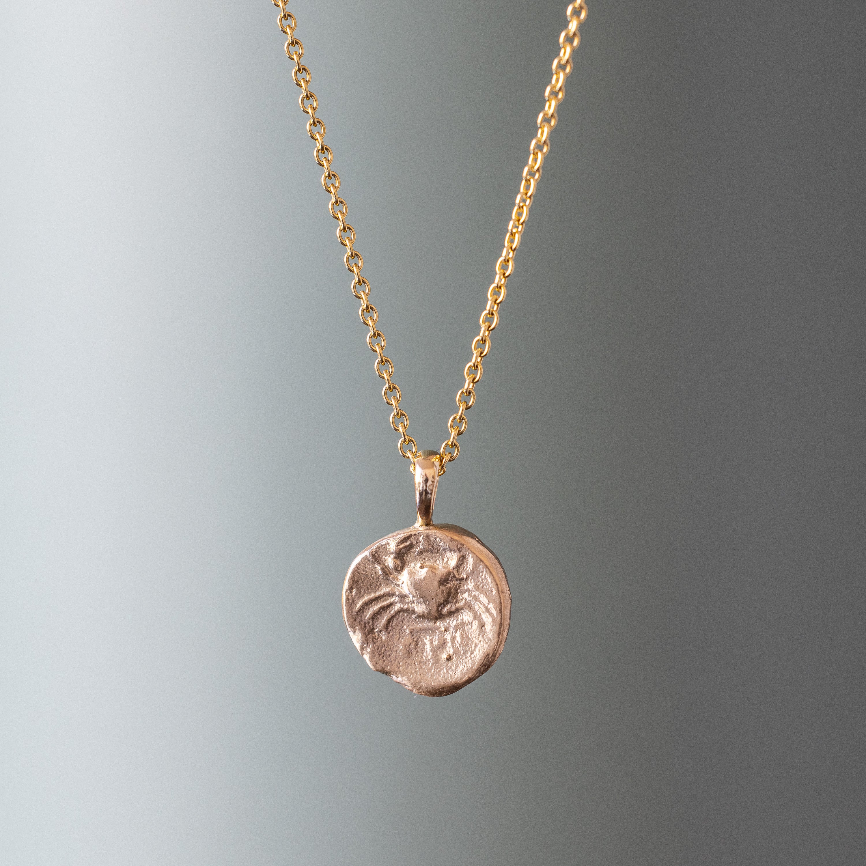 This coin was molded from an ancient silver coin and is a solid 14k gold replica, does NOT include chain.