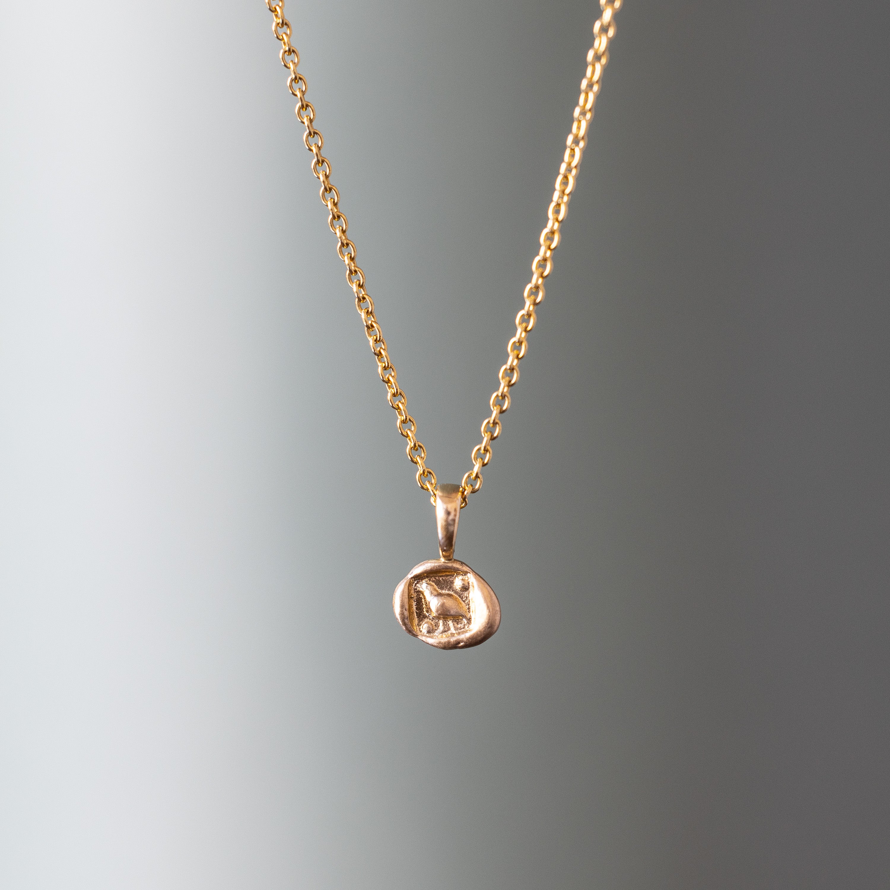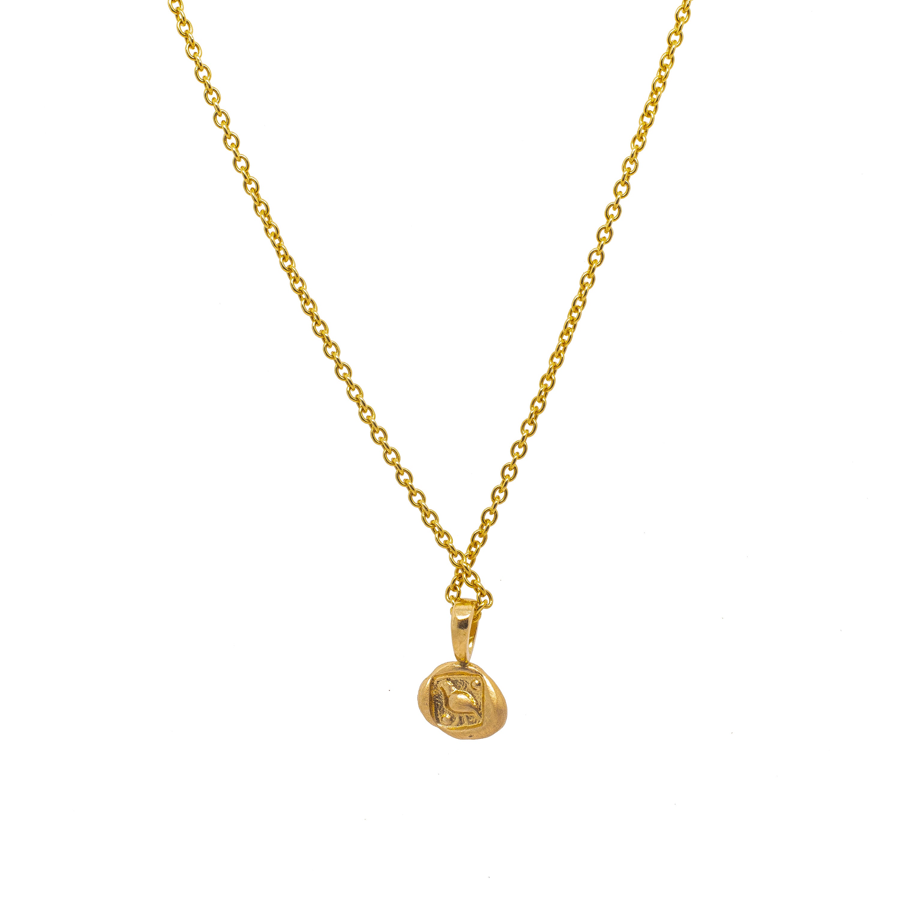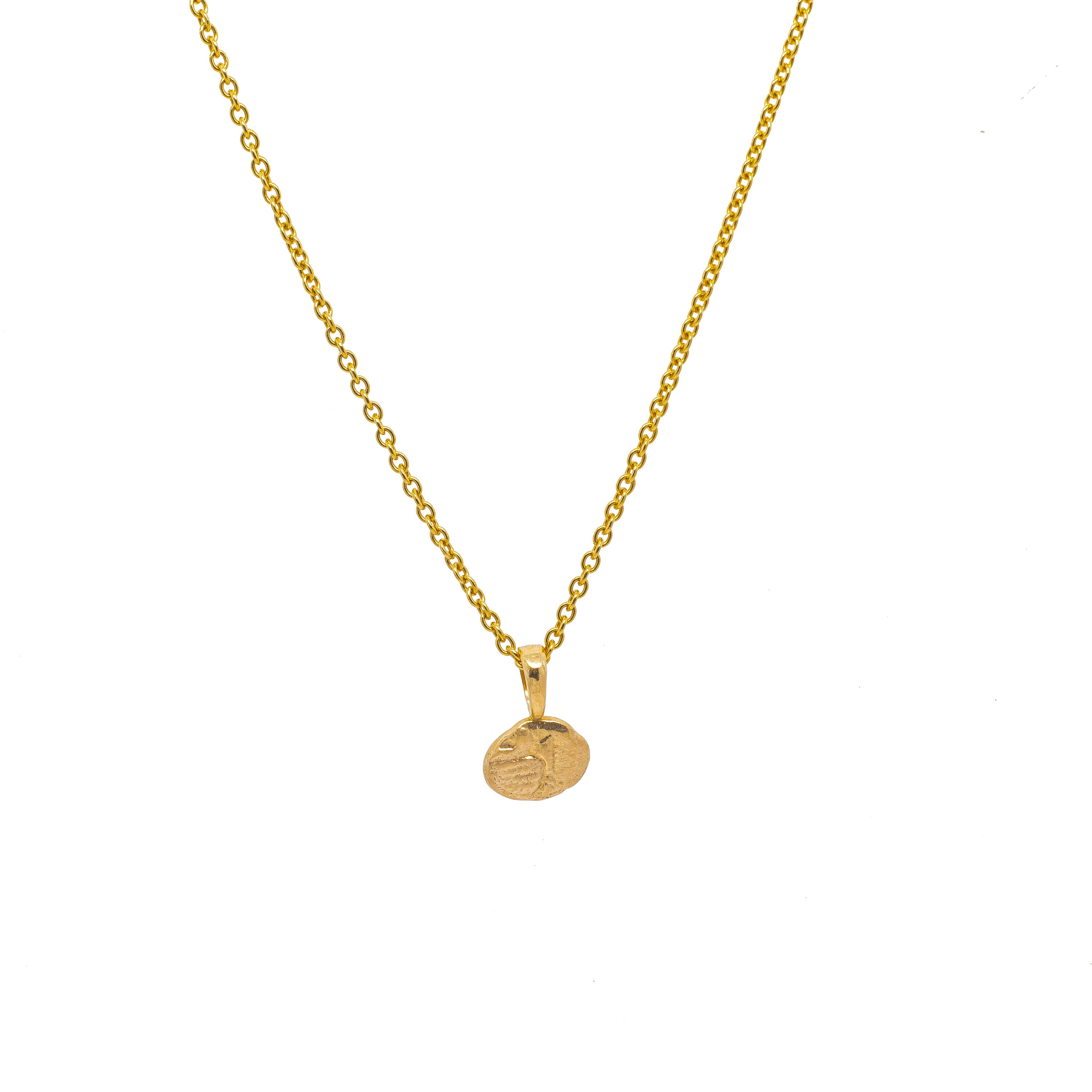 This coin was molded from an ancient silver coin and is a solid 14k gold replica, does NOT include chain.