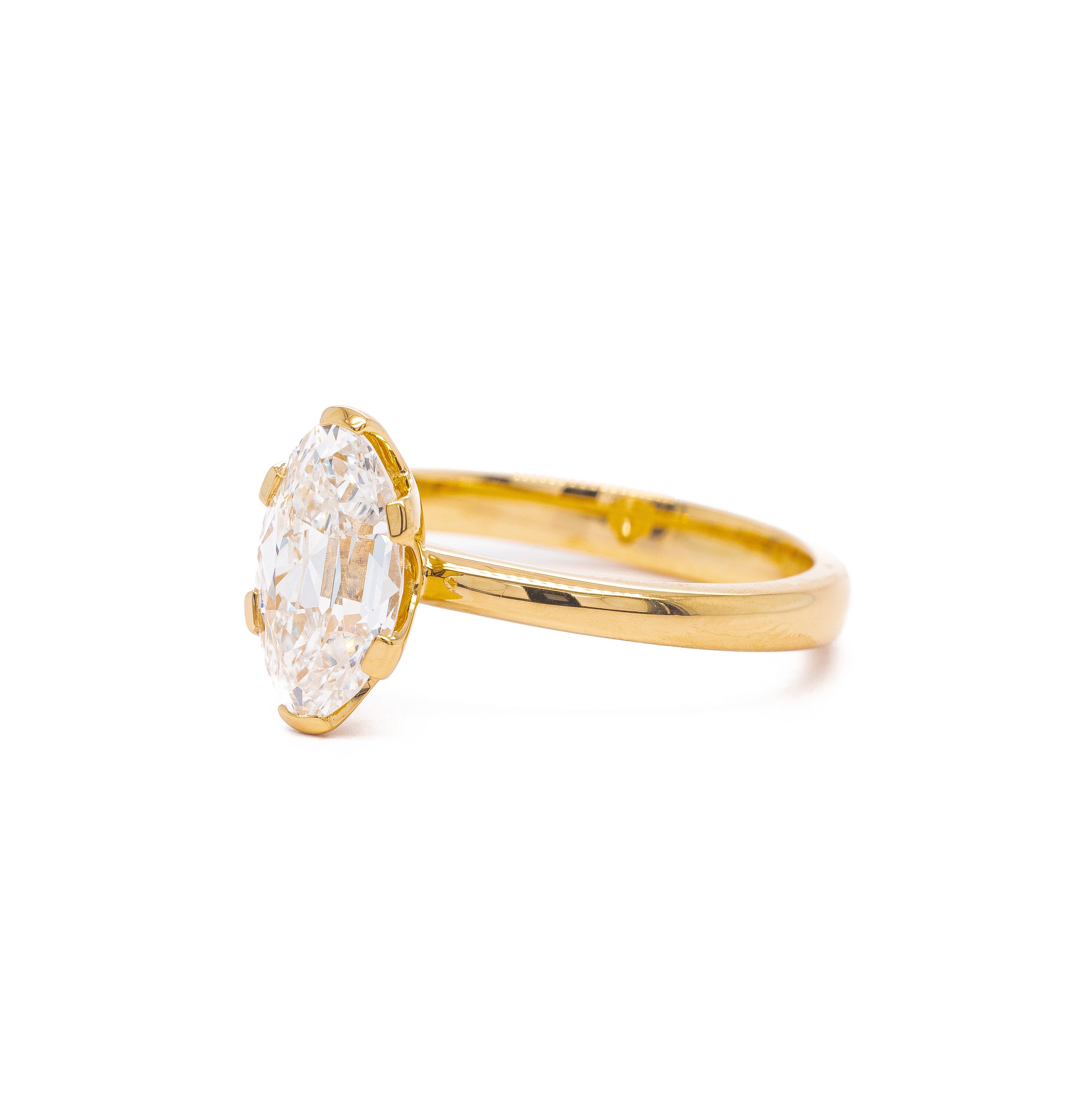 center stone: 1.58ct Old Mine Moval (E SI2 GIA)