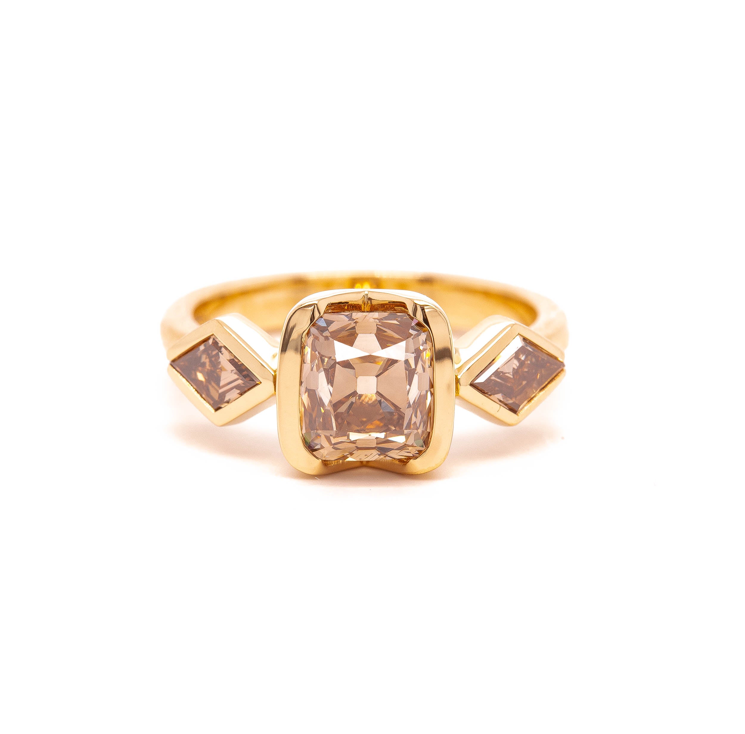 stones: 2.22ct Old Mine Cushion Diamond (Fancy Brown SI2)
