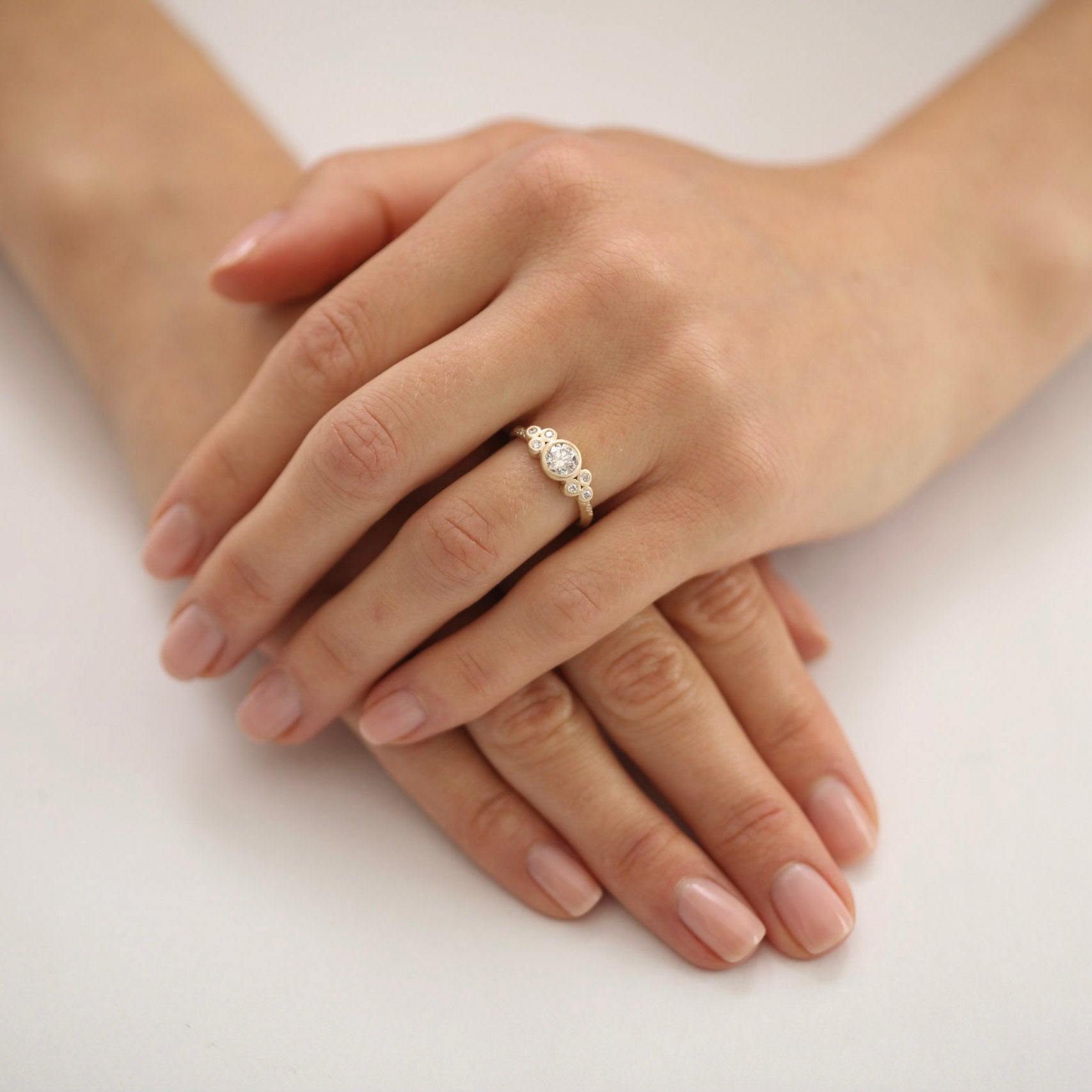 center stone: 0.70ct round brilliant diamond