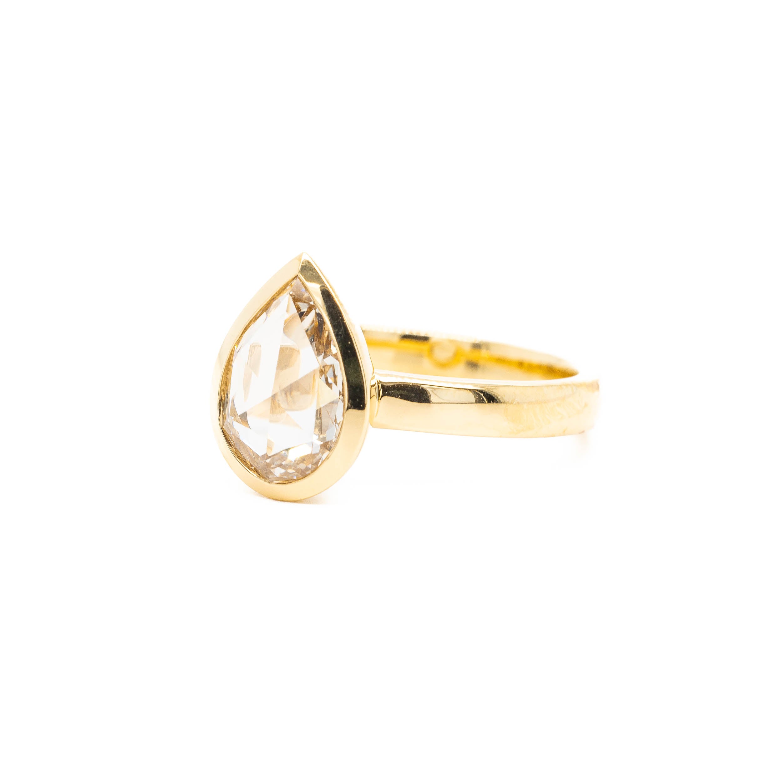 center stone: 2.01ct Rose Cut Pear (J SI1 GIA)
