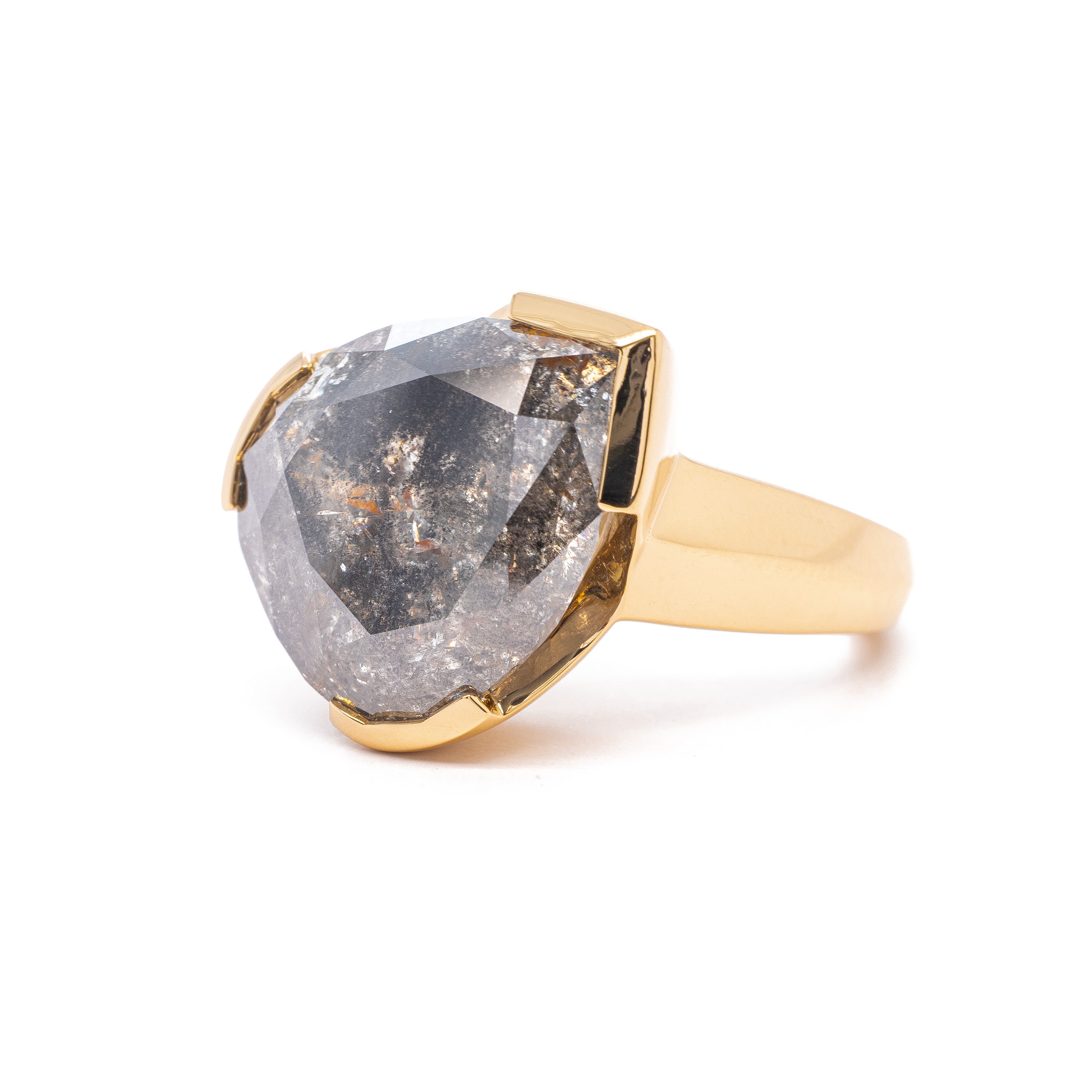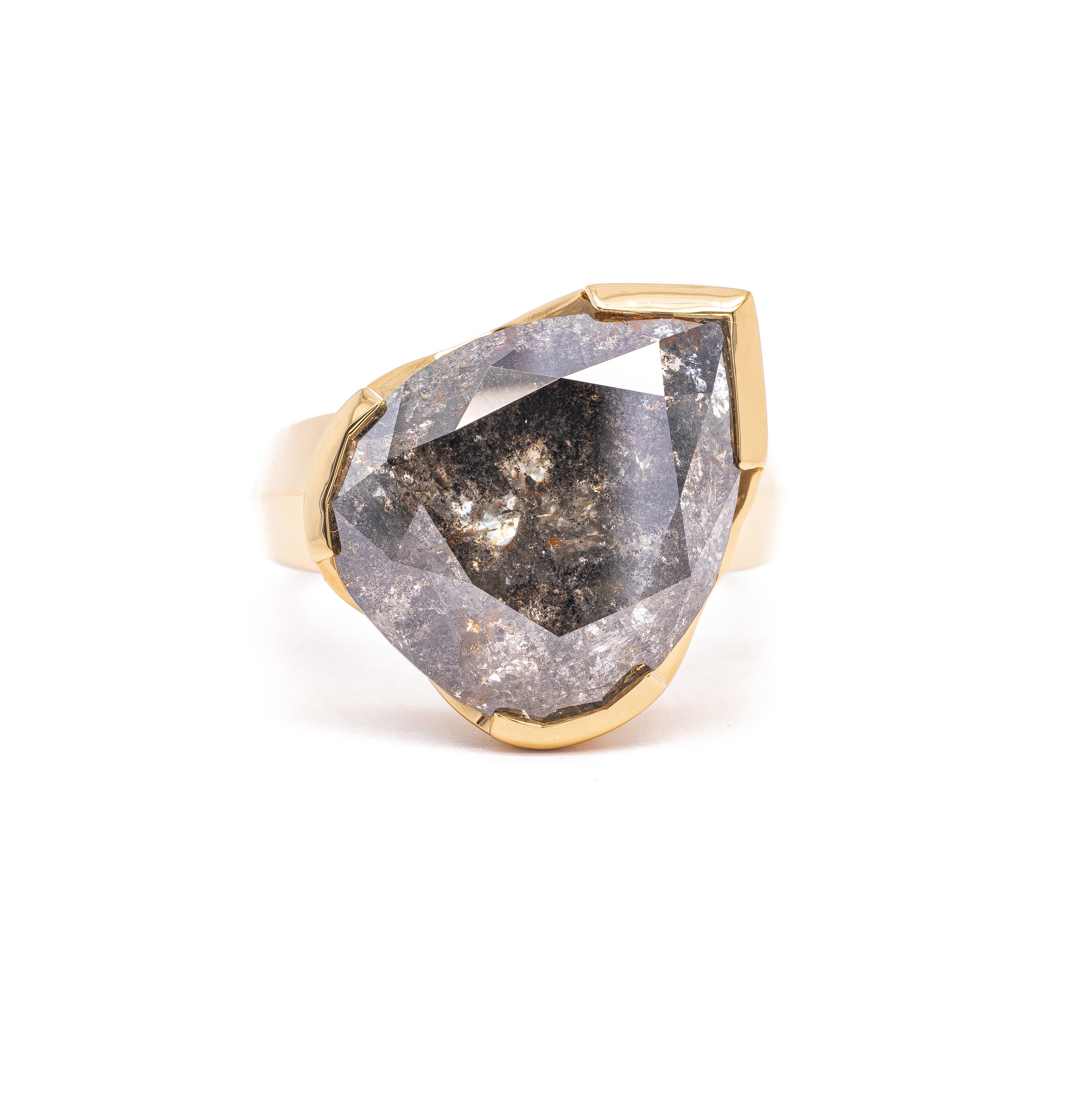 center stone: 12.08ct Salt & Pepper Brilliant Pear Diamond