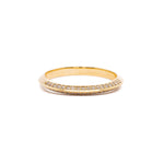 A classic thin knife edge band, razor thin with a double sided pavé of diamonds.