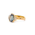 center stone: 2.19ct Poval moyo green/blue sapphire