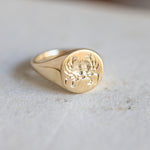 A beautifully detailed locally hand engraved* native California Dungeness crab on a round signet ring.