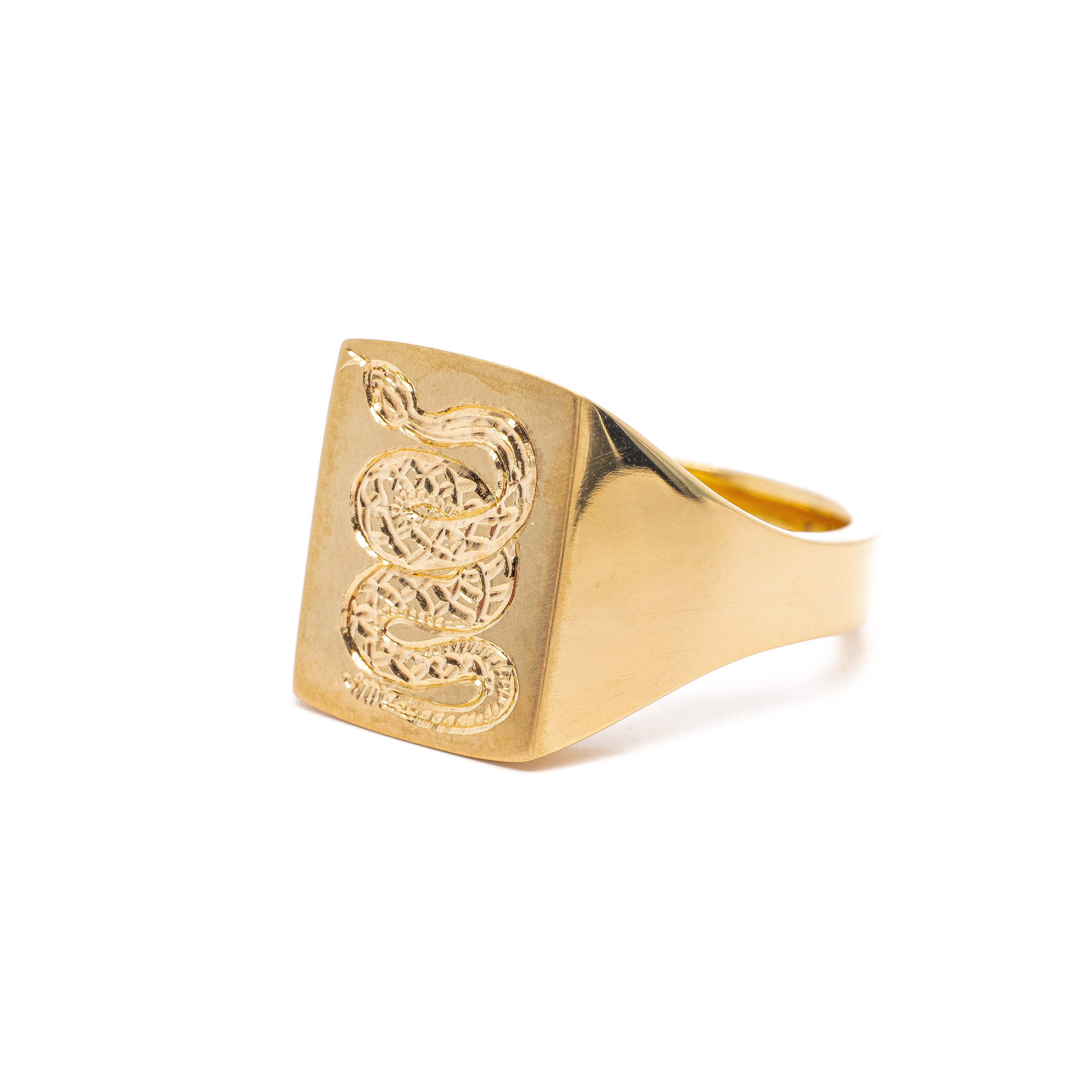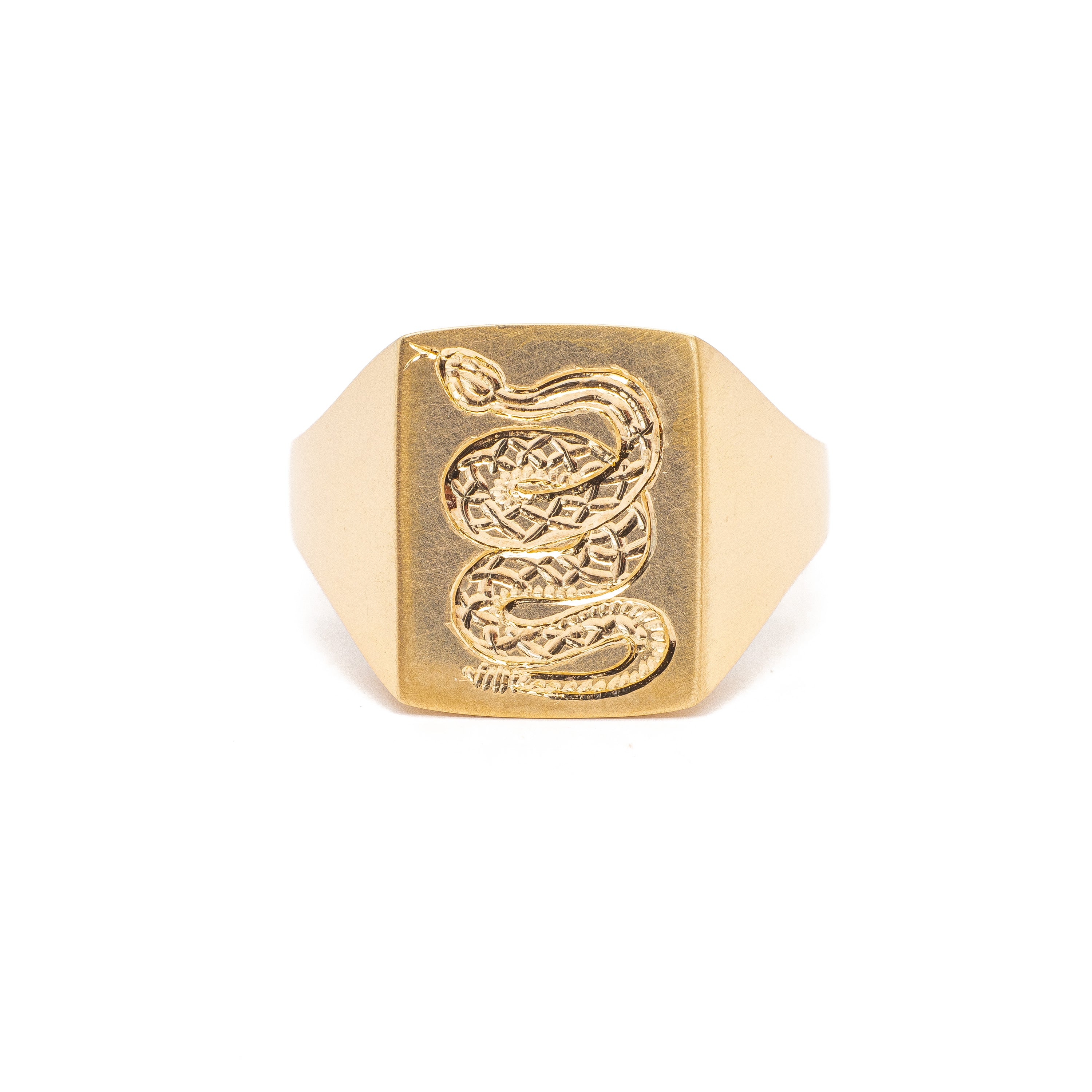 A beautifully detailed locally hand engraved* native California rattlesnake on a large round signet.