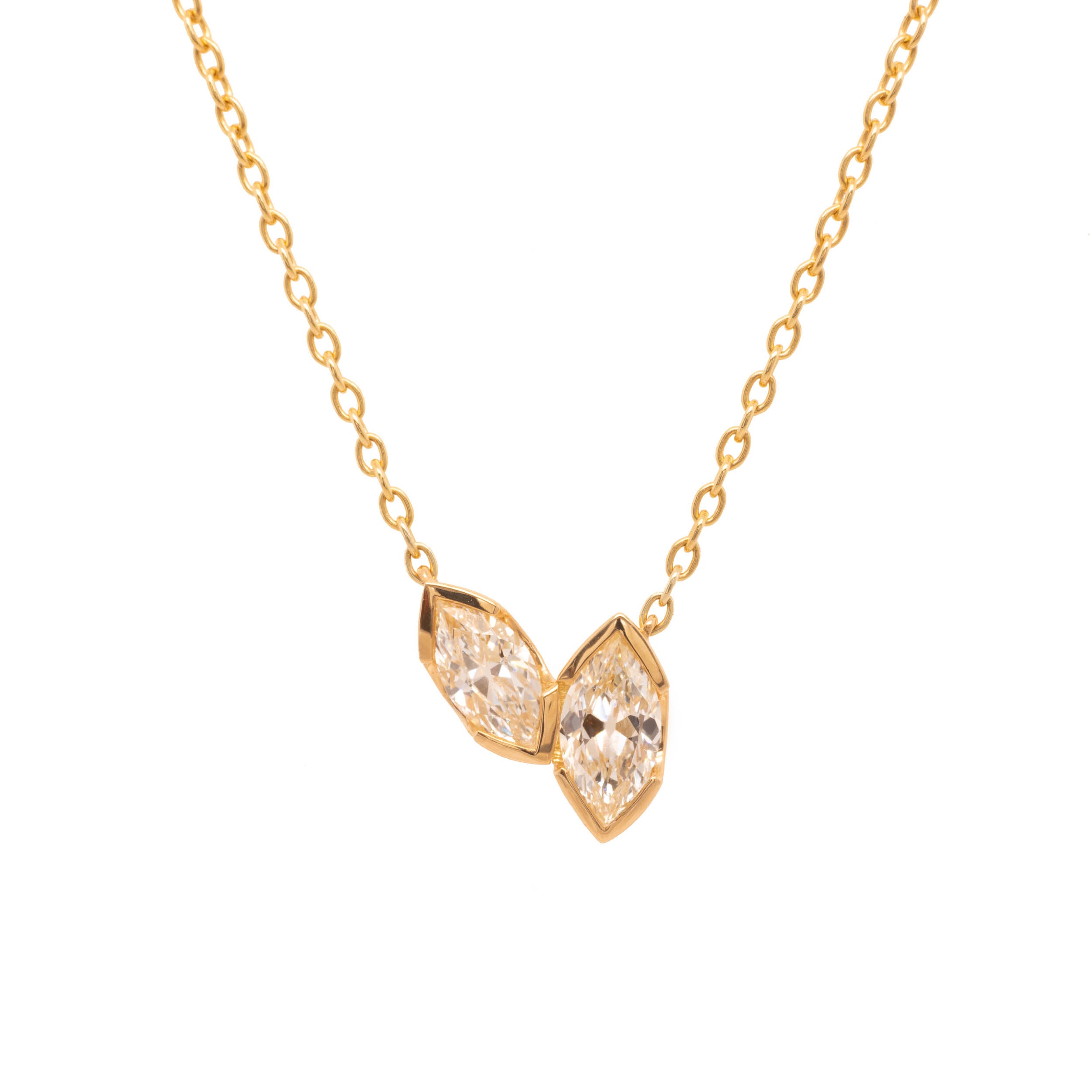 These beautiful antique marquise are set in warm half bezels at a charming angle, just slightly different from one another they make for a harmonious pairing.