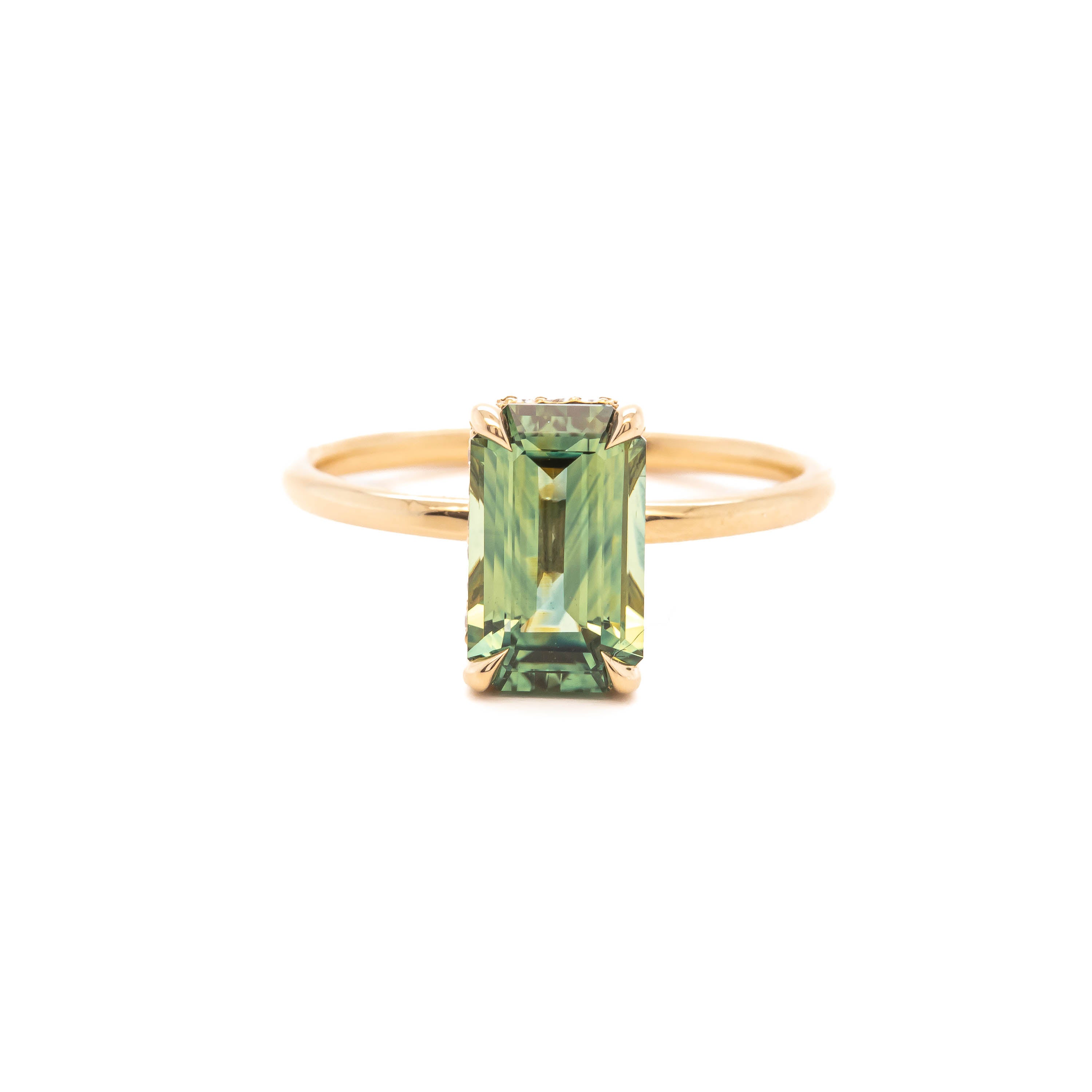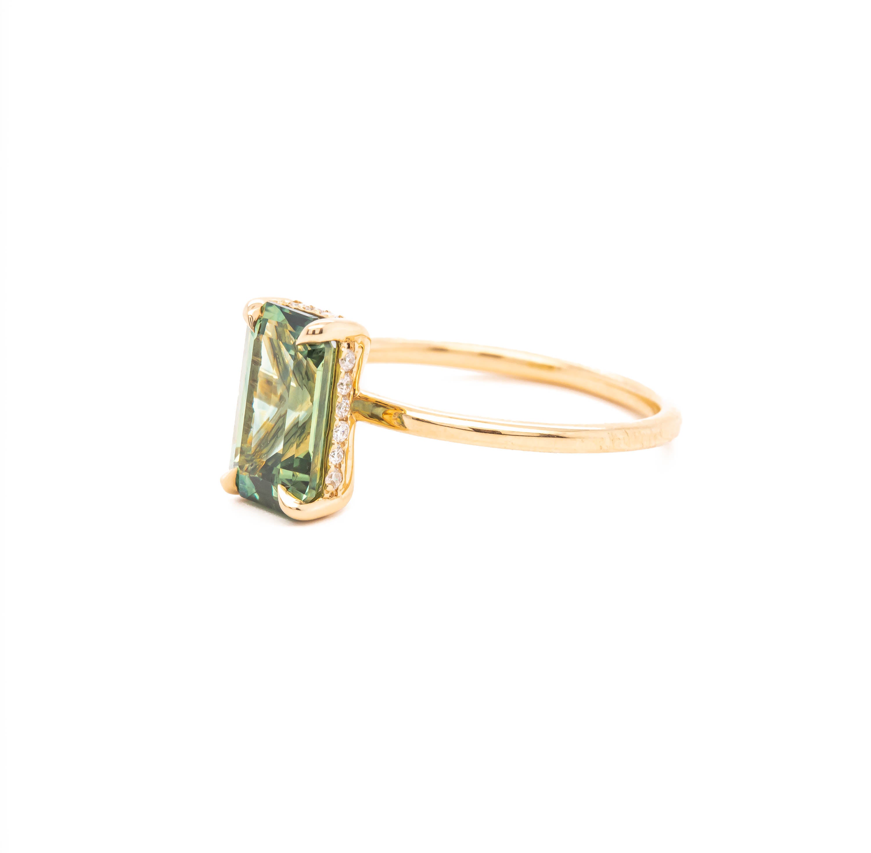 center stone: 2.79ct Emerald cut watercolor Montana sapphire