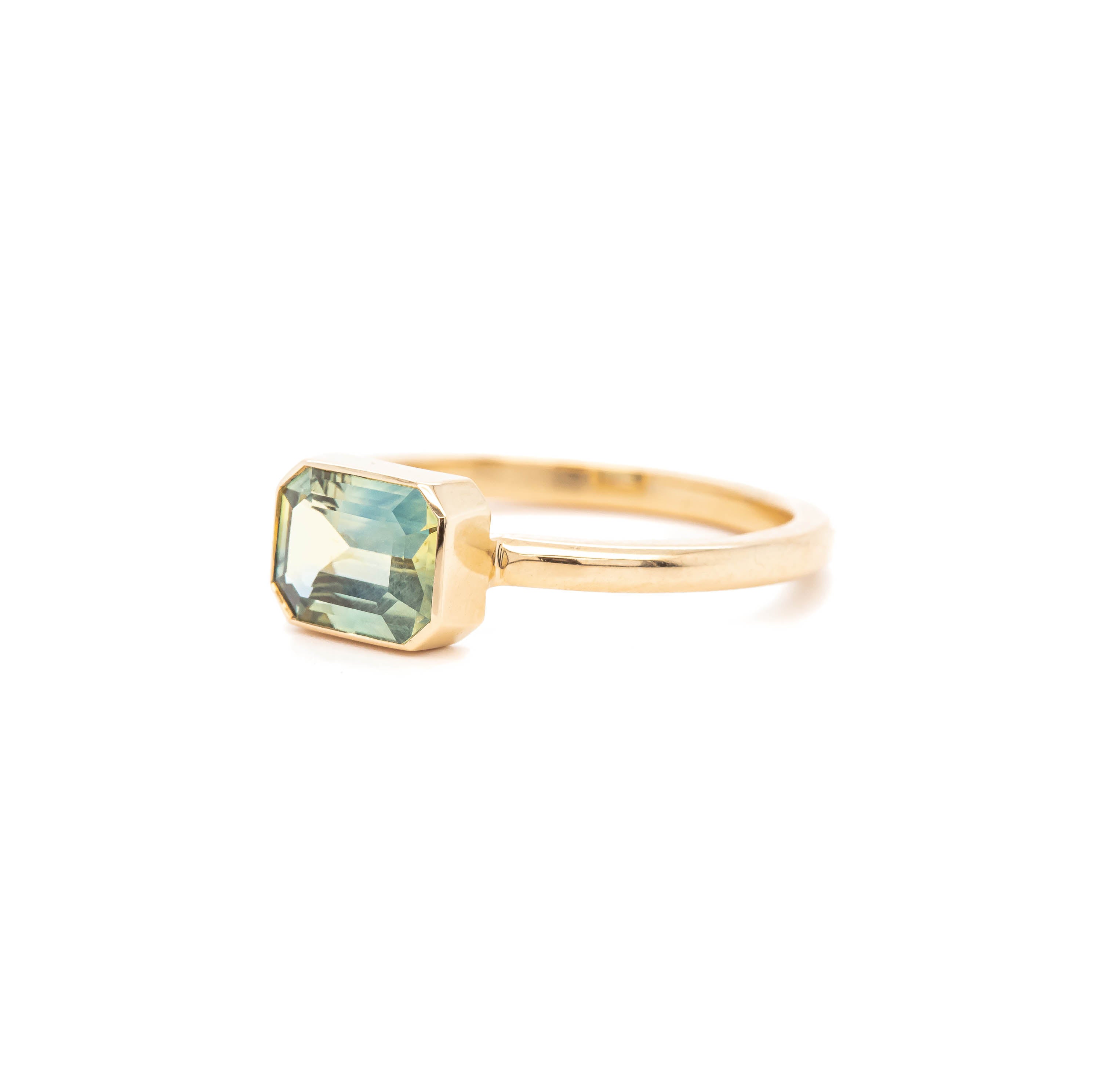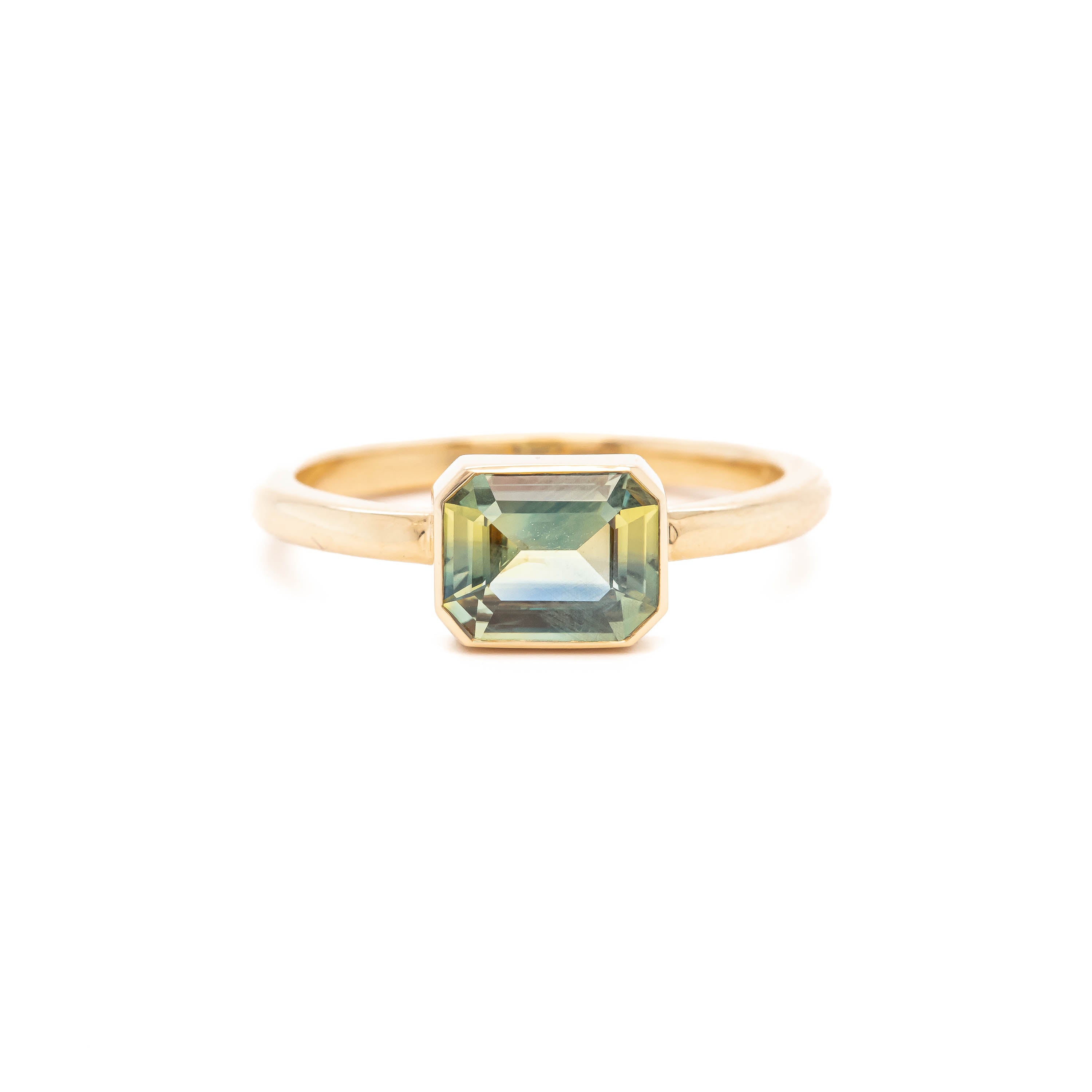 center stone: 1.36ct Bi-color emerald Nigerian sapphire