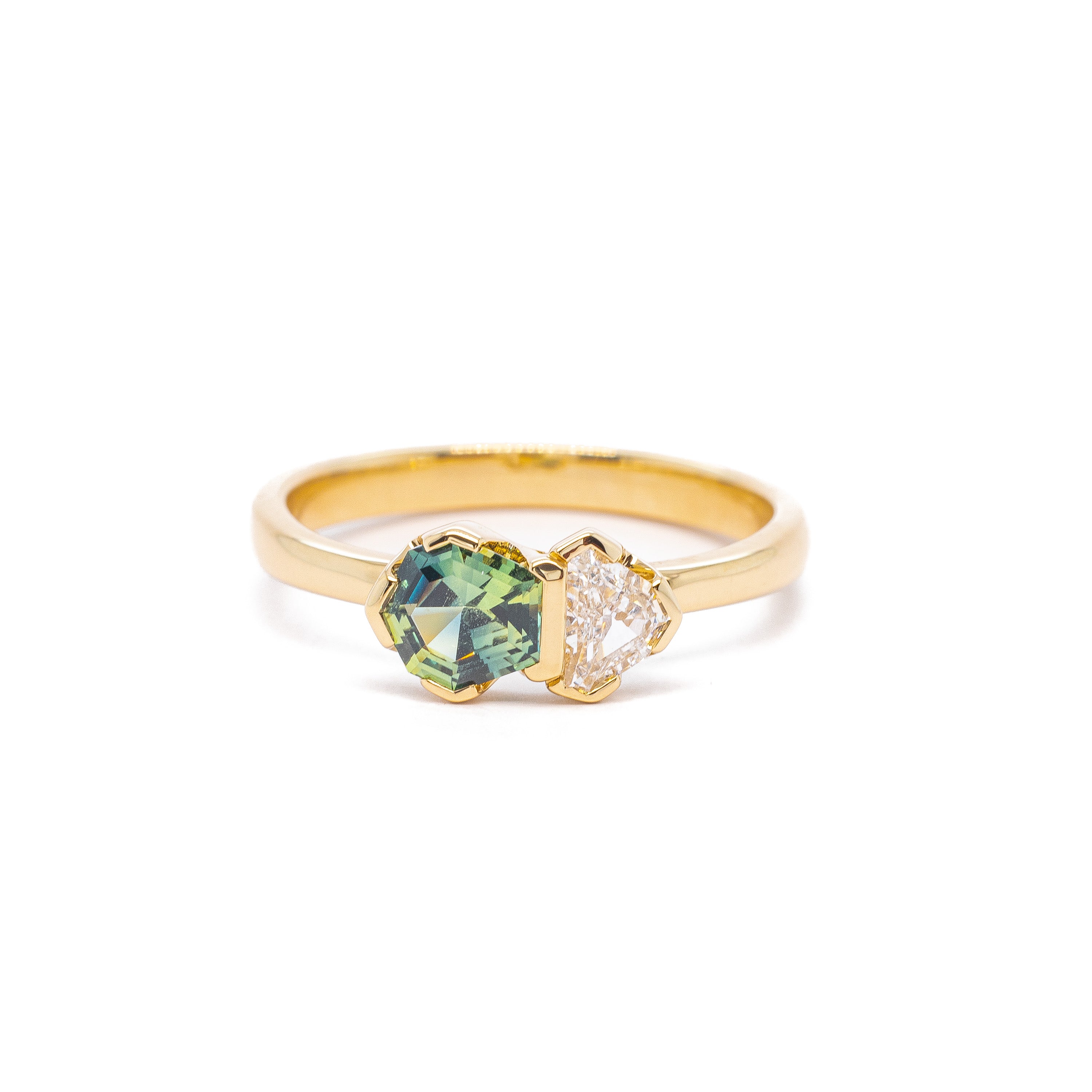 center stone: 0.65ct shield bi-color Kenyan Sapphire