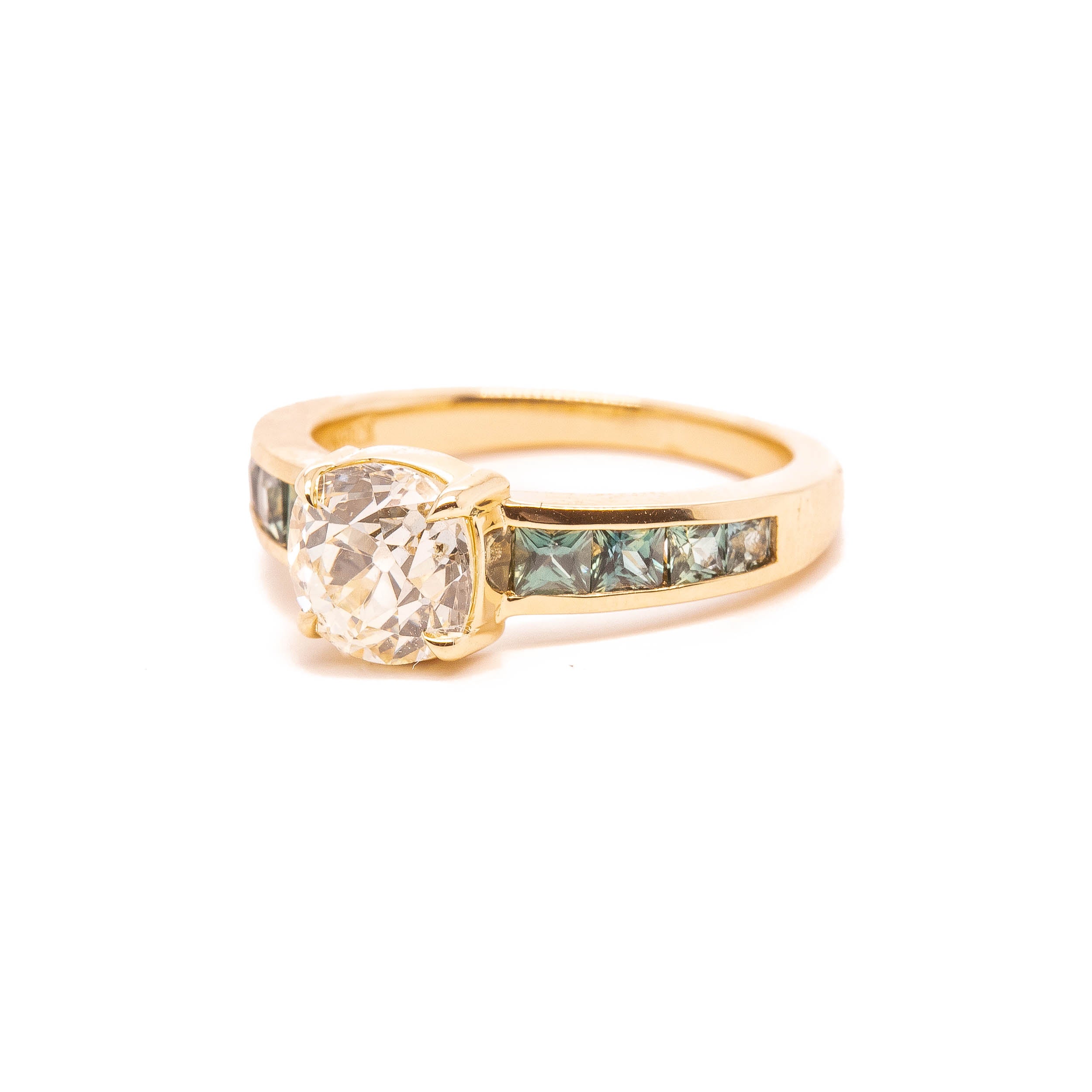 Chunky Old Mine Diamond sweetness and bold, channel set, teal, Australian sapphires. The perfect blend of old and new with an updated channel style band,