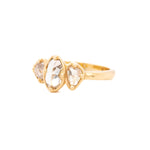 This ring features three one-of-a-kind rose cut diamonds in soft champagne hues that gleam and sparkle like moonlight.