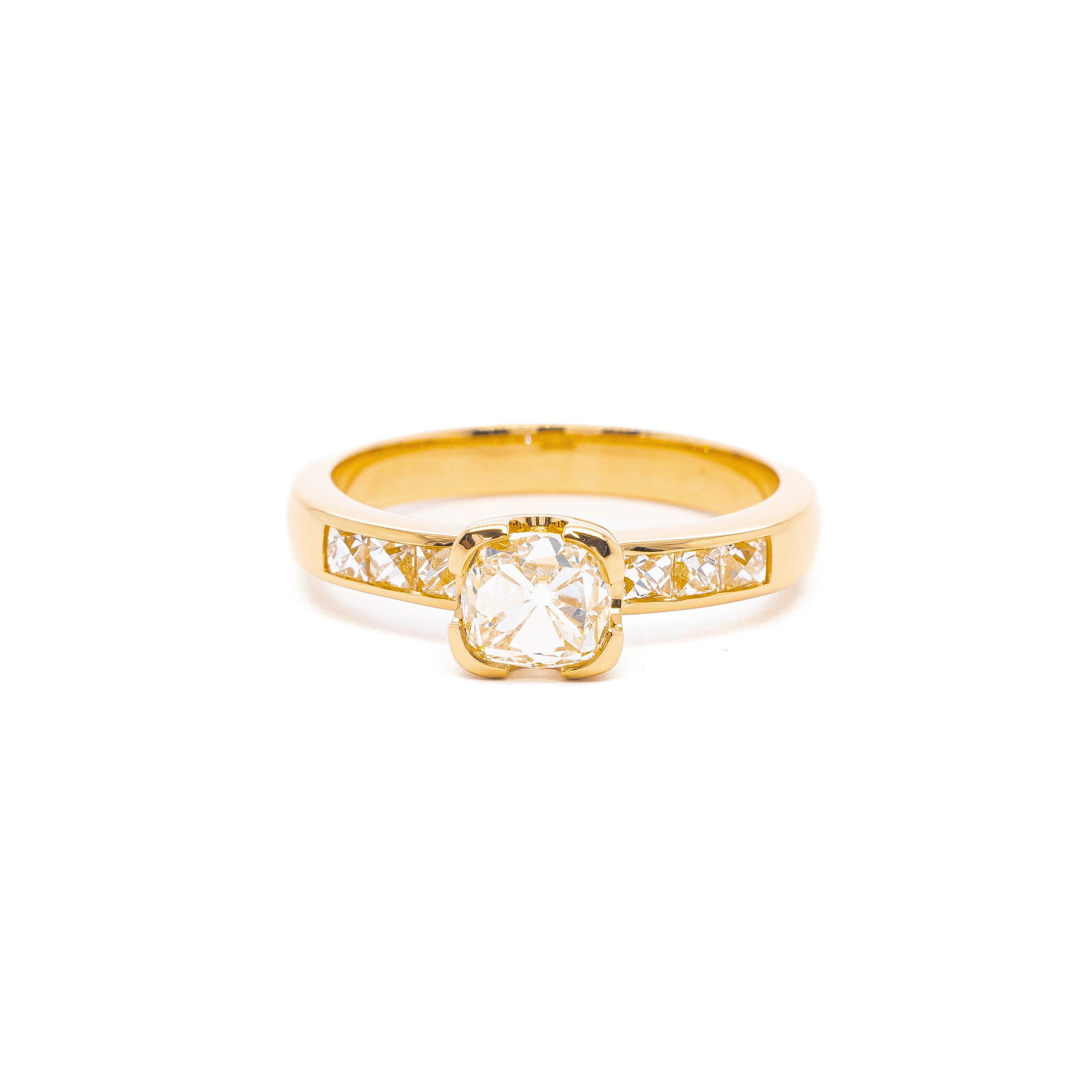 center stone: 0.97ct Old Mine cut cushion (N VS1)