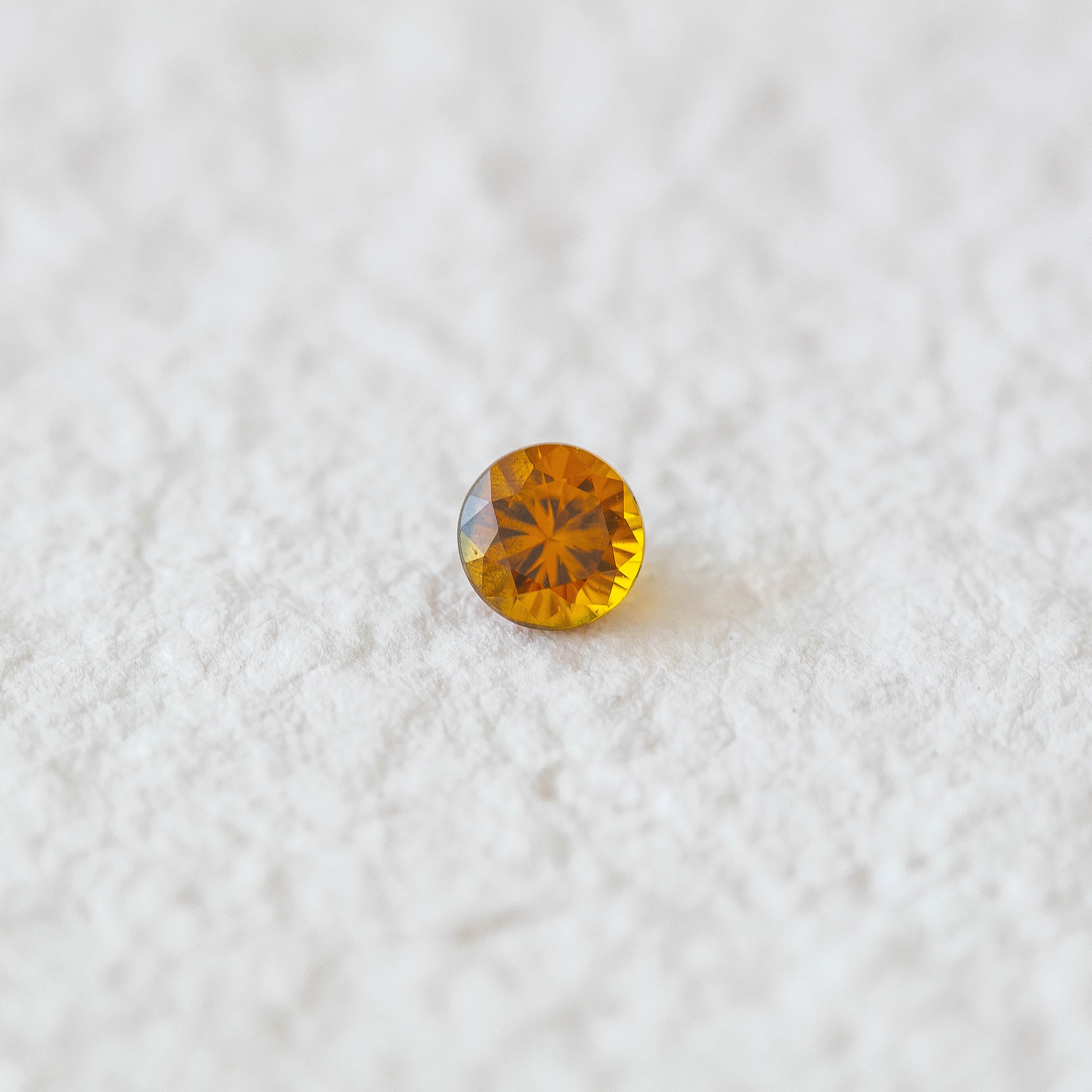 A saturated orange Montana sapphire for a fiery pop of color with hints of blues and greens.