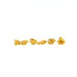 These one of kind single gold nugget stud earrings were panned for on the North Fork of the American River in California gold country. Each piece shows its unique alluvial history with individual river worn shapes.
